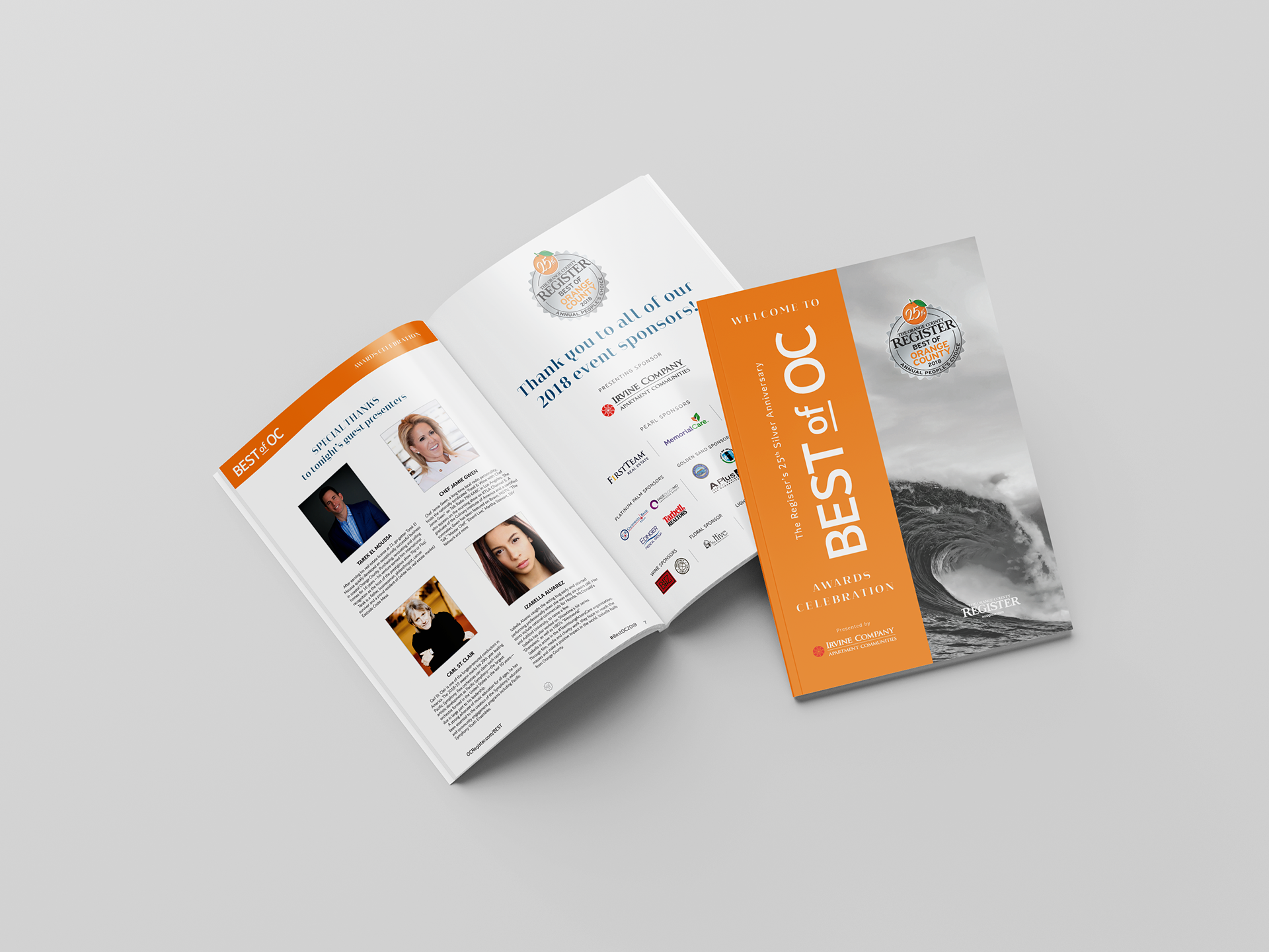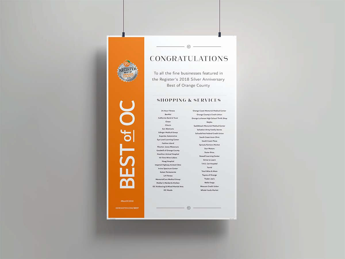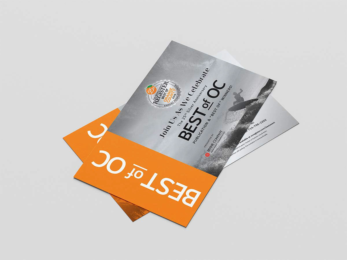 A selection of marketing material designed for the Best of Orange County event 2018. An event for The Orange County Register.
