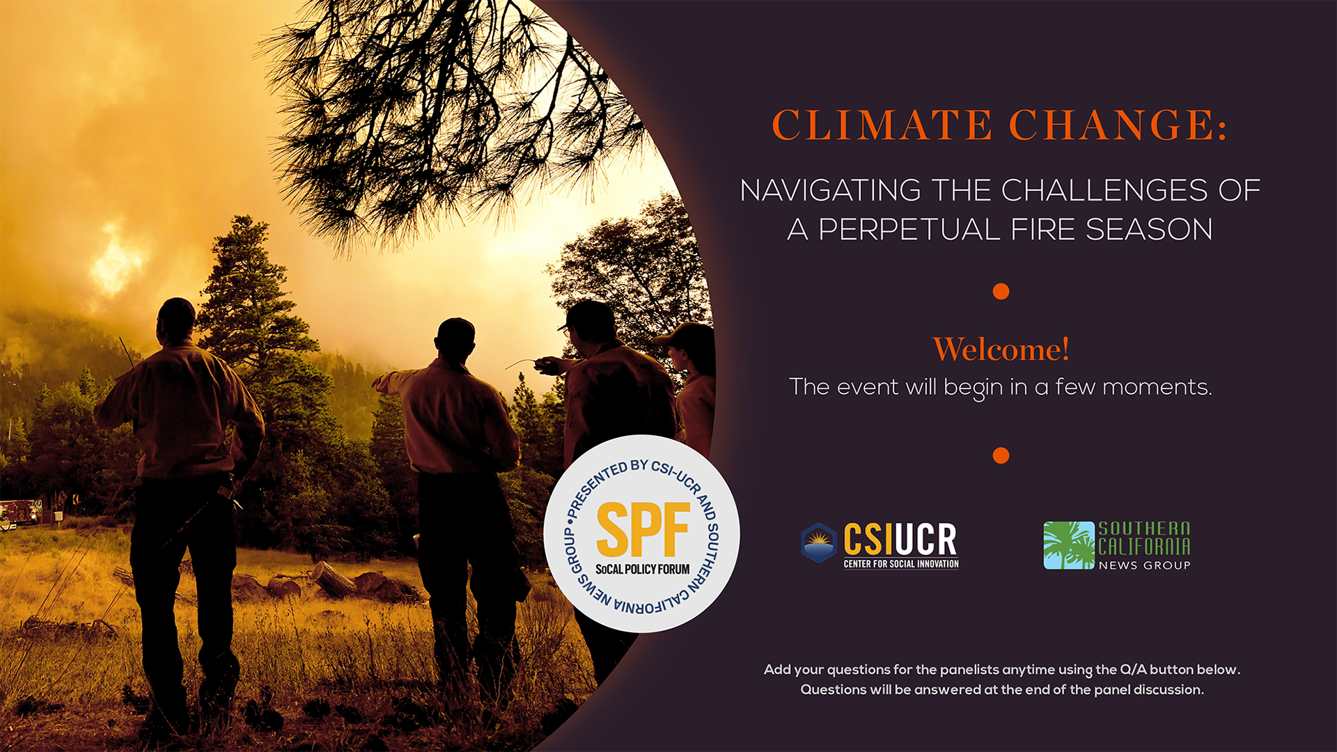 A digital slide presentation for the Center for Social Innovation on wildfires and the effects of climate change.