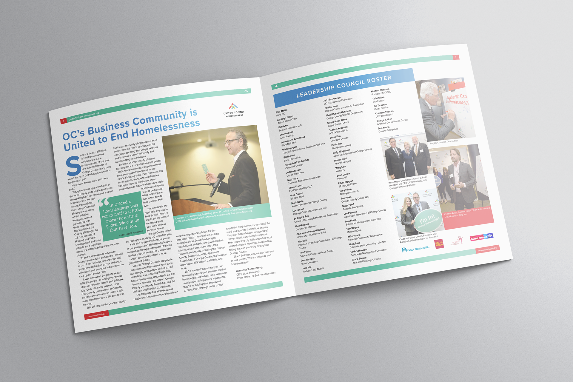 Homeless in Orange County — Orange County California United to End Homelessness. Homeless awareness campaign 12 page tab section. Art direction and layout